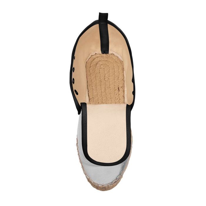 Your personalized ankle espadrilles are supplied with laces which will either be white or black, depending on your trim color choice. 'Natural' will have white laces and silver eyelets, whereas 'black' will come with black laces and gunmetal eyelets. The inner lining of your espadrilles will always be 'natural' colour.