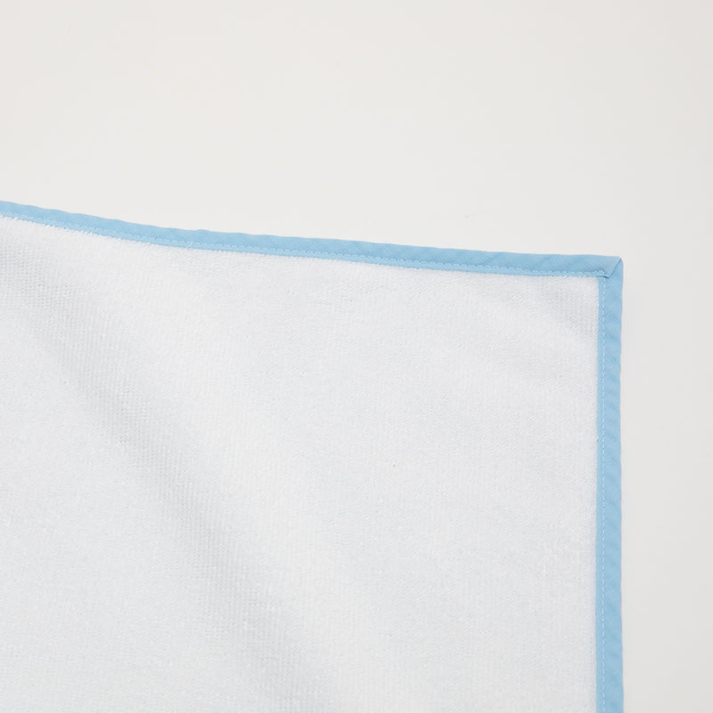 We print your design onto the microfiber side of the towel using a process that fuses the eco-friendly inks into the fibers of the material resulting in a bond that is lasting and high-quality. Hand cut to size by craftsmen and stitched and hemmed by seamstresses, everything is handmade to order on site.