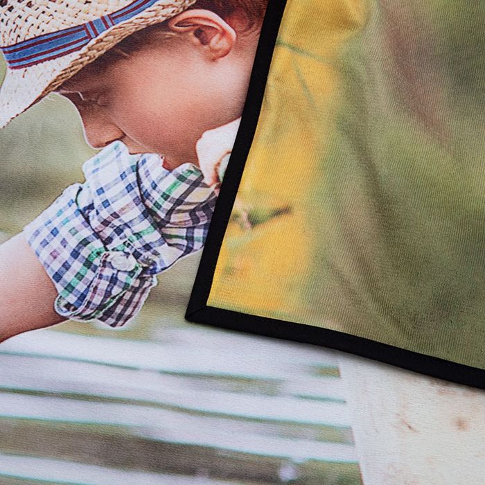 To make the most out of your personalized bath towels, we recommend washing it before you first use it, to make your towel extra soft. We use Microfiber for the face and cotton toweling for the back to make our bath sheets. This combination guarantees a clear print and dries very quickly. Your new bath towel feels wonderful against the skin, perfect for when you hop out of the shower. For your design, you can use a full print, a photo montage, or a detailed image. Even plain colors will pop on the soft microfibre face, while fine details will look clear and stunning. Design your own bath towel set, big and bespoke, as well as super-soft for when you've just gotten out of the shower, you could even hang it on the radiator as you make your own bath, for a warm snuggly feeling at the end of it.