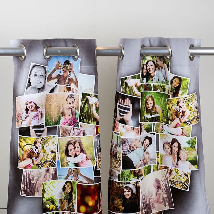You can choose your own background color for your curtains, rather than using the standard white, and our design tool comes with some pre-set collage templates. Rather than fill your curtains edge to edge with photos, create a beautiful picture collage on a colored background that matches the decor of your room. This is a great idea if you'd like bespoke curtains in multiple rooms.