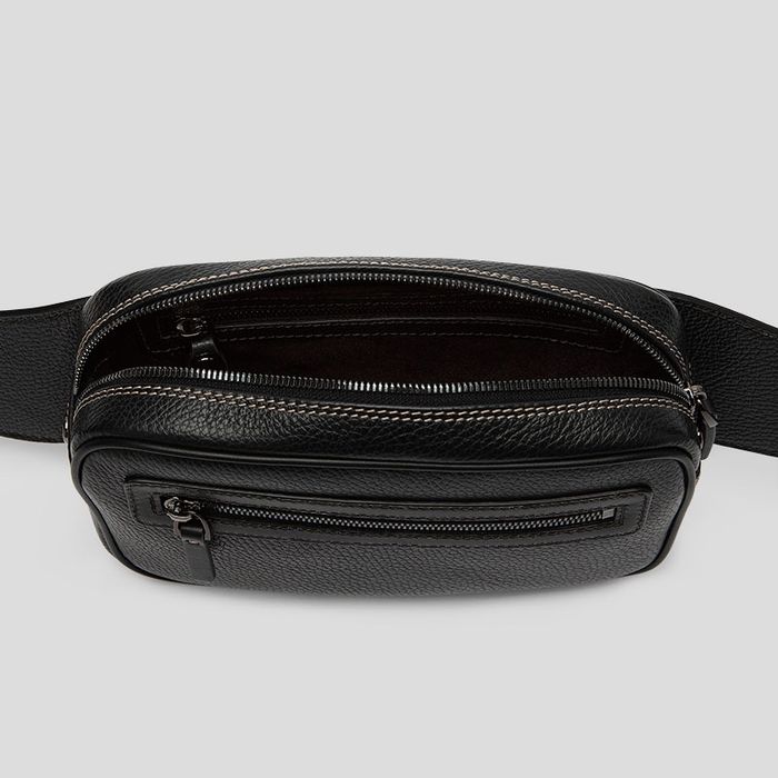 Get your creative juices flowing when you design your own bum bag. With a choice of smooth or textured Nappa leather and four printable areas including the front panel, bottom panel, front and back gussets, as well as customizable stitch and hardware colors, no bag offers more freedom of expression. Using the 3D bag viewer, you can move the camera around to see all angles of your custom bum bag. When designing your bag, bear in mind the zip pullers, piping, back panel, and strap panels will all be in smooth black Nappa leather. If the bag is a gift, why not upload images and text that truly personalizes the bag to the individual? If they enjoy traveling, you can even put an image that reminds them of home.