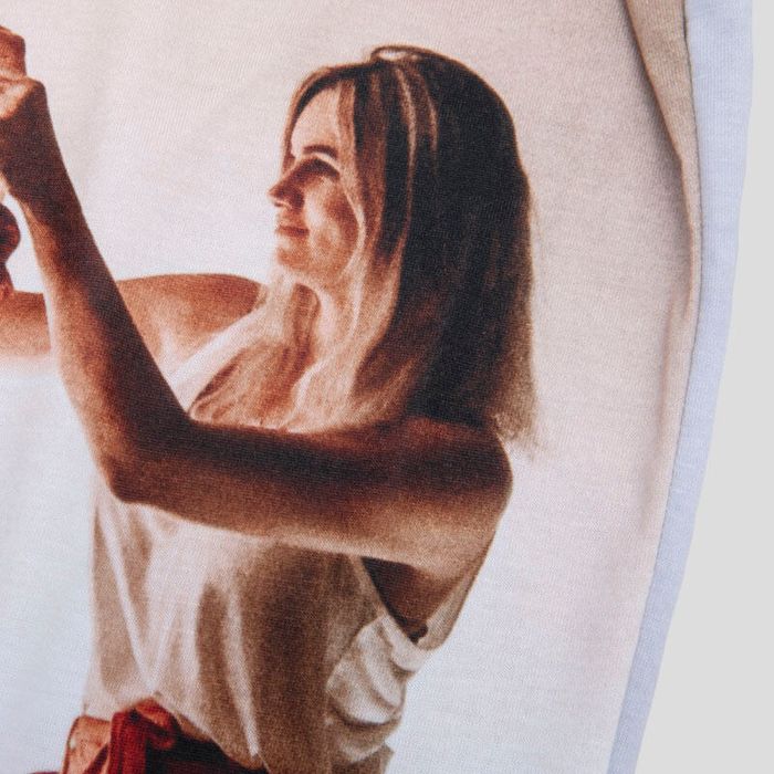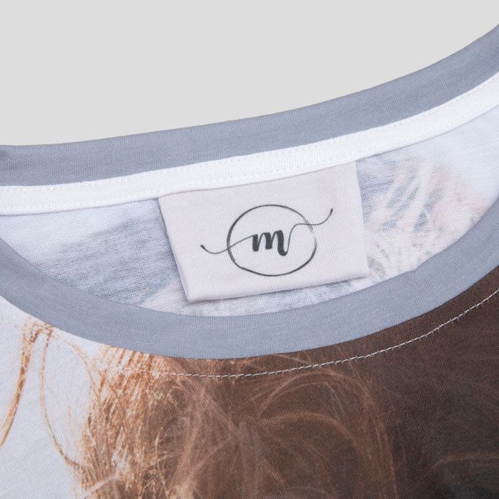 Turn inside out before washing. 86°F wash. Do not wring. Low heat iron, Iron on the reverse of the printed side. Do not tumble dry.