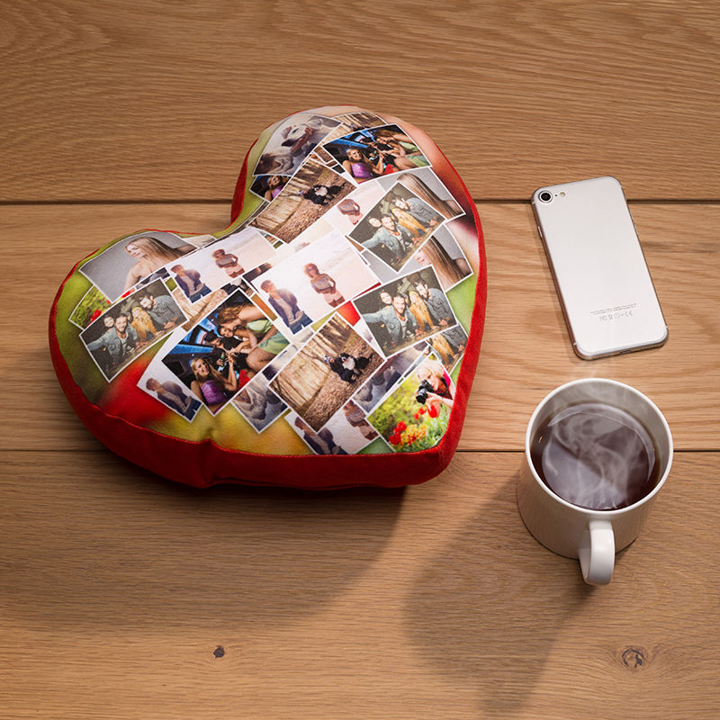 When positioning your photo, bear in mind the heart shape where you could lose important features in the little cut-out. When positioned correctly you can frame a face perfectly in a heart. Edit the image to ensure it's in the perfect place, or you can create a photo collage. This is perfect if you want to display a variety of memories to reminisce over. Simply upload a selection of pictures and choose from pre-set montage styles, or rearrange them into a collage arrangement for your custom heart pillow to really stand out.