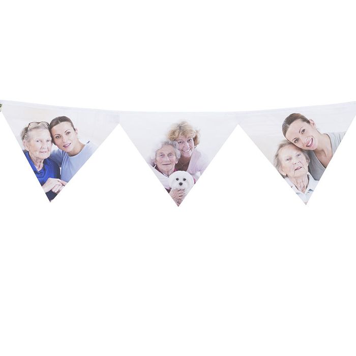 You can make your own decoration bunting flags as Christmas bunting with names and or photos to dress your party. You can make your own decoration with your street name on it to be used and reused next street party, or you can make a personal message on bunting flags for welcome home or happy birthday. Make your own bunting here in our online design system.