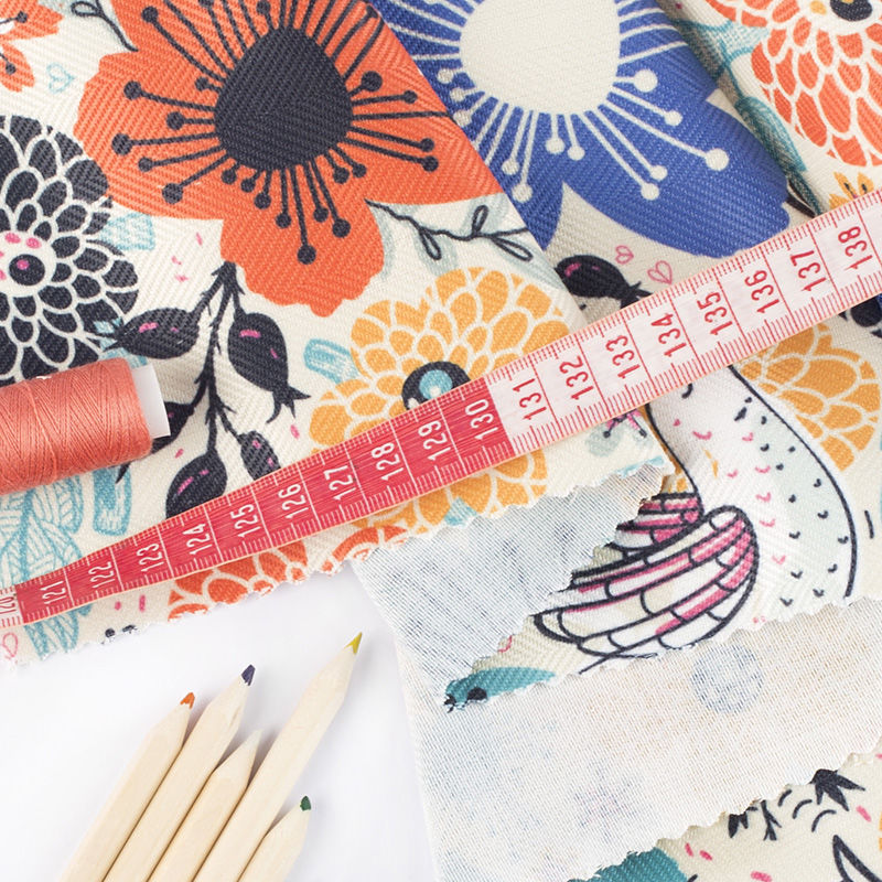 The opportunities are almost endless. Use the breathable peached poly sheeting to make bespoke bedding such as pillowcases, sheets, and duvet covers. The soft, smooth face feels lovely against the skin. The Trafalgar twill is perfectly suited to making jackets or coats, whilst the mulmul muslin with its open weave is better for lightweight scarves, dresses, and blouses. Polycotton fabrics are so varied and different in nature, but all produce wonderful, vibrant prints to show off your photos and patterns perfectly.