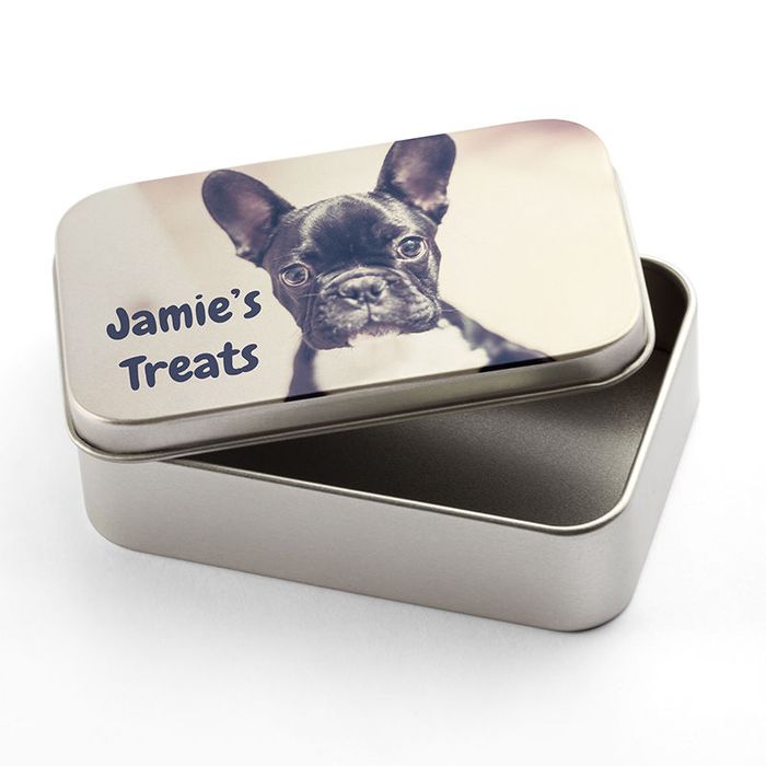 These tins are customized with your photos, which appear to be engraved into the metal. This gives the tin a seamless vintage look with a metallic finish, very reminiscent of the old classic tobacco tins. This detail makes the custom printed tins a perfect gift for all occasions. Place your gift inside the custom made tins to really give it that special touch, and it can even be displayed around the house after!
