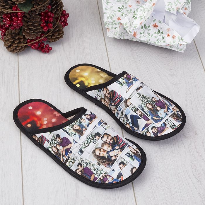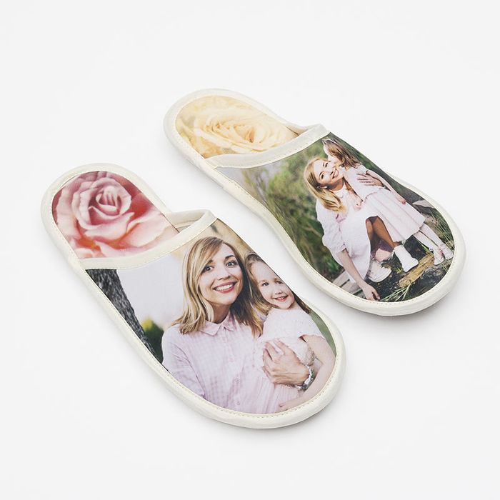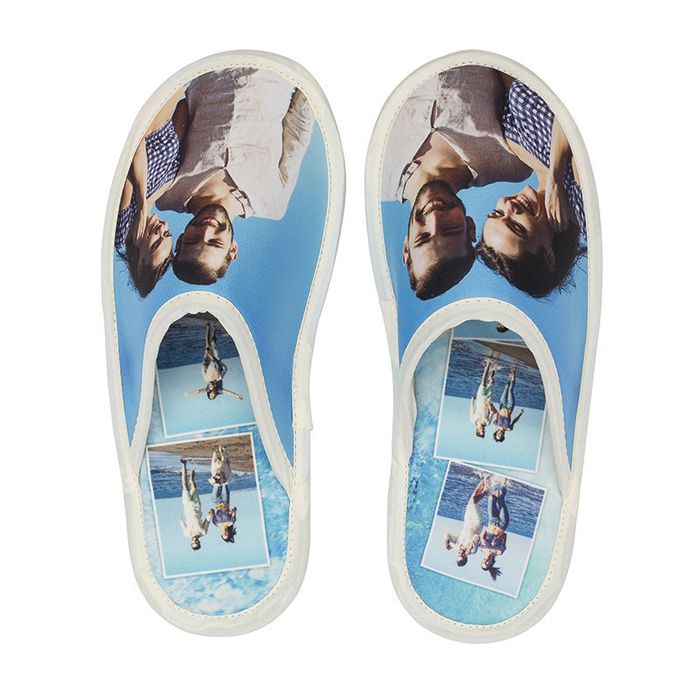 Our personalised slippers are lovingly cut, sewn and printed to order using soft Portobello Canvas and a spongey neoprene vamp that holds in warmth. The tough leatherette sole gives you reliable grip on hardwood or tile while staying flexible enough to curl up on the sofa. Thanks to two generous print panels you can create custom photo slippers, monogrammed designs or even custom slippers with logo for corporate retreats.