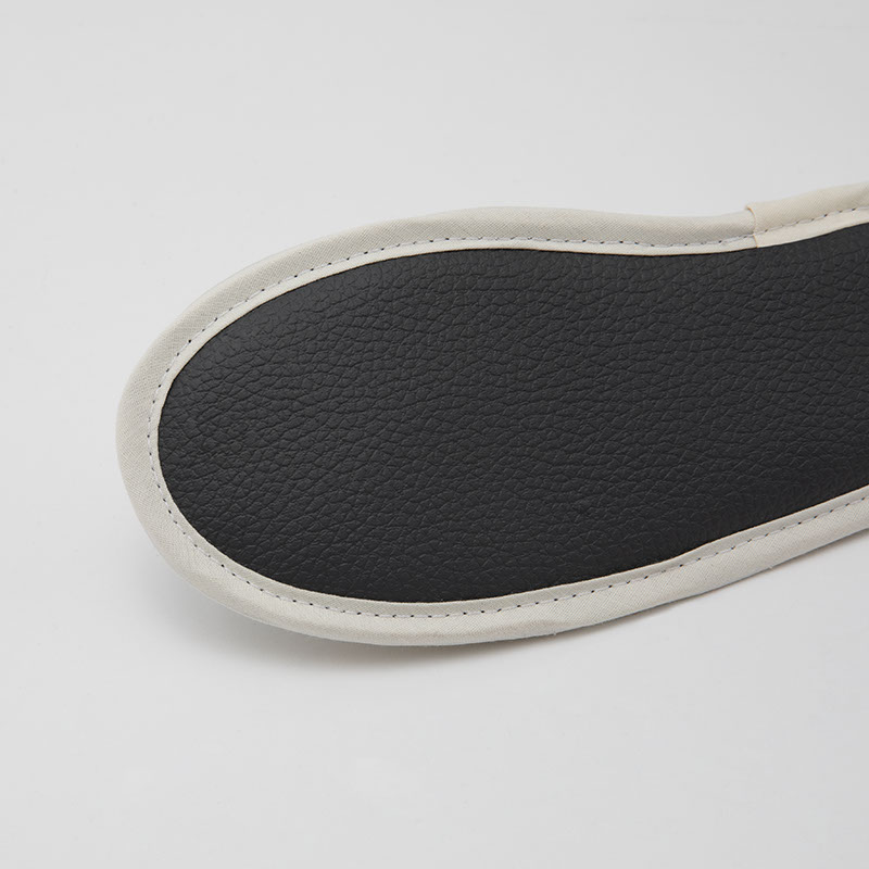 We print your artwork using eco-friendly inks that bond permanently with the canvas fibres for vivid, fade-resistant colour. After printing, each piece is precision-cut and stitched by our in-house team. The neoprene, canvas and leatherette layers are then bound with your chosen trim, resulting in a flawless pair of custom slippers ready for indoor adventures.