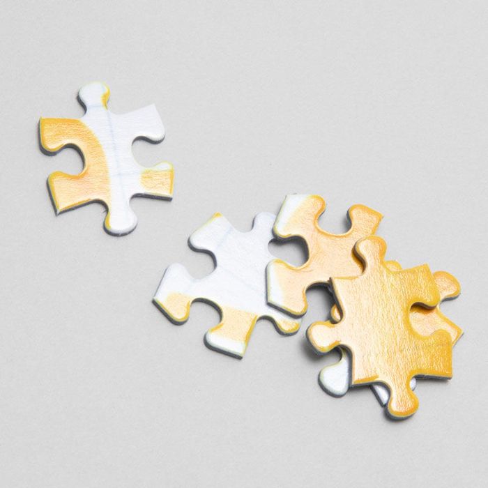 Printing on tin: Each of your personalized jigsaws comes in a beautiful presentation tin that has been sized for the puzzle. This is printed with the same design or can be left unprinted, depending on the option you chose. We print directly onto the metal tin, and you'll be able to see the metal grain as we fuse the inks directly onto the metal surface. This produces a rustic, silver metallic finish where your image looks slightly desaturated, giving your tin a lot of character.