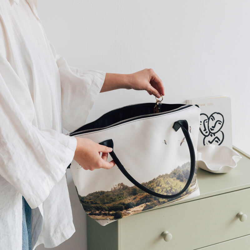 We chemically bond the colored ink to the fabric to ensure the print won’t peel or rub away after use, making this custom zippered tote bag for women a great bespoke gift. Making each handbag custom and to order ensures you have an original designer handbag just for you. Our fabric is hand cut and hand sewn by expert textile professionals to achieve excellence every time. We hand your personalized zippered tote bag over to quality control, who checks and makes sure everything is in perfect shape before we send it out to you.