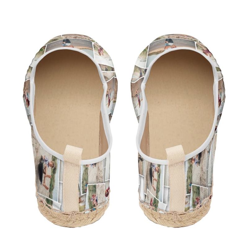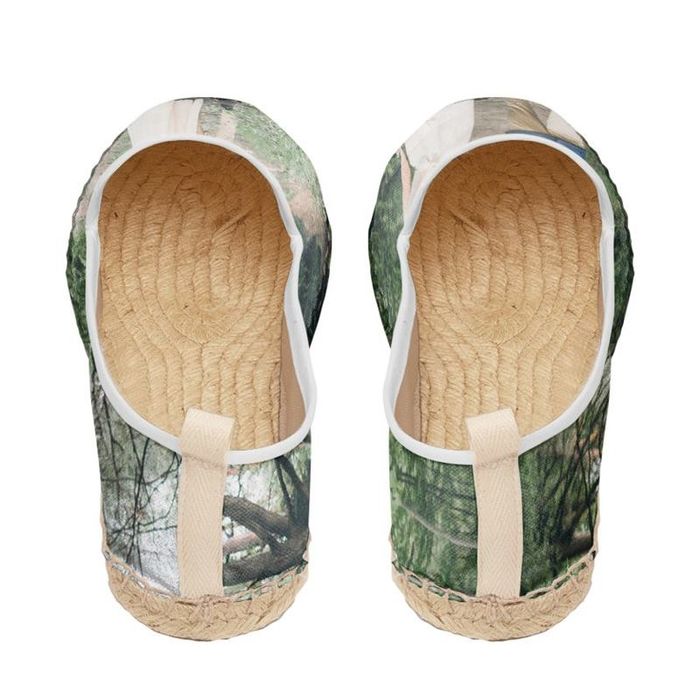 We have years of shoemaking experience, where we combine traditional methods with the latest print and design technologies. To create your slip on espadrille flats, we use two fabrics: a linen-look fabric for the exterior and natural cotton for the interior. The canvas is a man-made material that has the beautiful natural look of linen, complete with slub weaves. It is a durable and hard-wearing textile that will help preserve the life of your slip on espadrille. Inside, we use natural cotton. This is a breathable and moisture-wicking fabric that will keep your feet feeling cool and fresh. Once you have uploaded your photos into our design interface, our team of technicians carefully check them before printing them onto the fabric. This is then cut to size and your choice of trim colors is added, as is the leather, printed fabric, or natural jute sole (your choice). Finally, the fabric is bonded onto the jute and rubber base, and your espadrilles are complete.