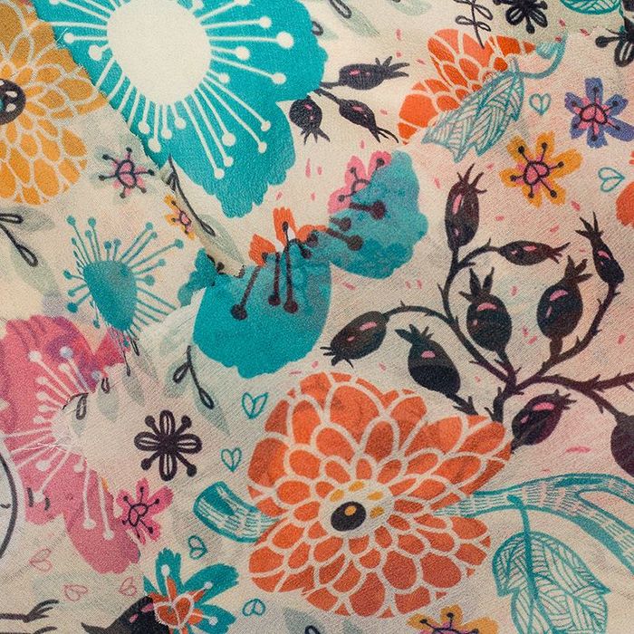 Fine details and sharp lines look right at home on printed georgette fabric.