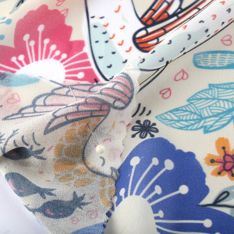 Fine details and sharp lines look right at home on printed georgette fabric.