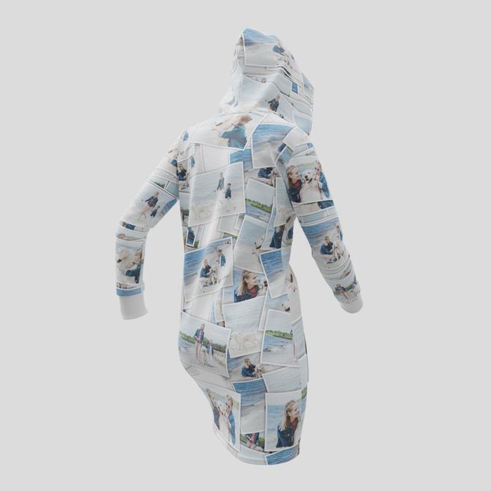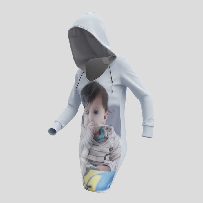 If you can't decide which photo to use, why not upload a whole bunch and create a collage? Or you could use our pattern repeat tool to make an all-over print of a face, a logo or even a witty statement. Designing your own personalized hooded sweatshirt dress is so simple using our online design tool you'll likely even find yourself having fun!