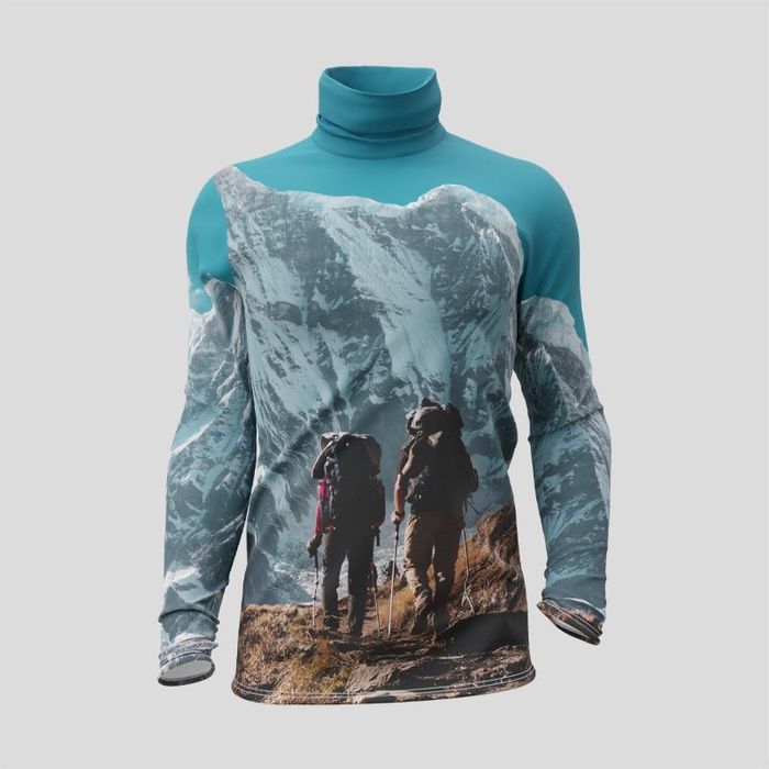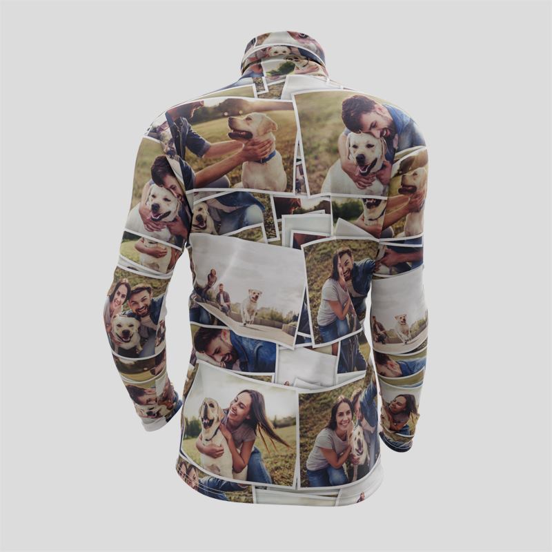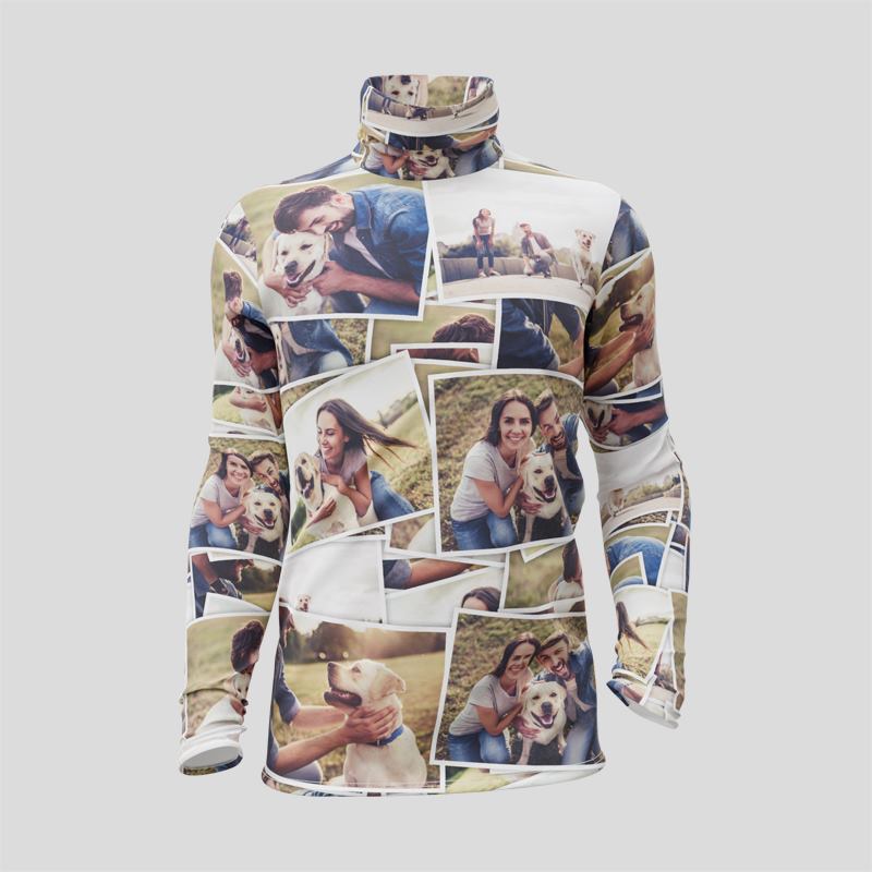 Your personalized turtleneck can be worn either on its own or under a jacket. If you intend to exclusively wear this underneath an open jacket, consider this when creating your design. Keep intricate details of your photos away from the sleeves or edges, as they will spend most of their time not visible.
