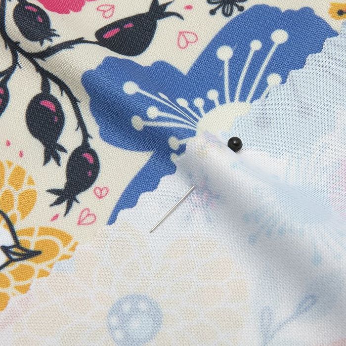 All of our fabrics are printed digitally, but we do use different methods for this including dye sublimation and pigment printing. Both methods bond your design to your chosen fabric, in full glorious color. Pigment printing is a very localized printing method, which applies the colored dyes directly to a specific part of the fabric, and builds up the design, which works especially well on natural fabrics. Dye sublimation is a