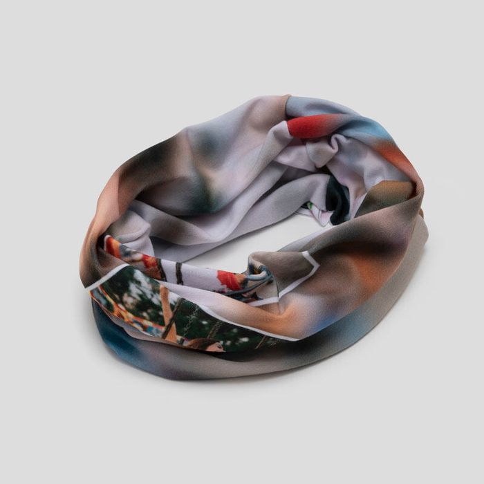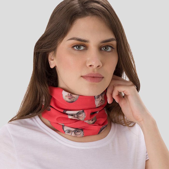 Our versatile personalized neck warmer can be used as a face mask, headband, neck warmer, hairband, scrunchie, beanie, balaclava, foulard, neckerchief, bandanna and lots more. It's a special jersey textile that keeps you warm, dries fast and looks cool. What makes custom printed neck warmers even better is that you can custom print it with your own photos, face