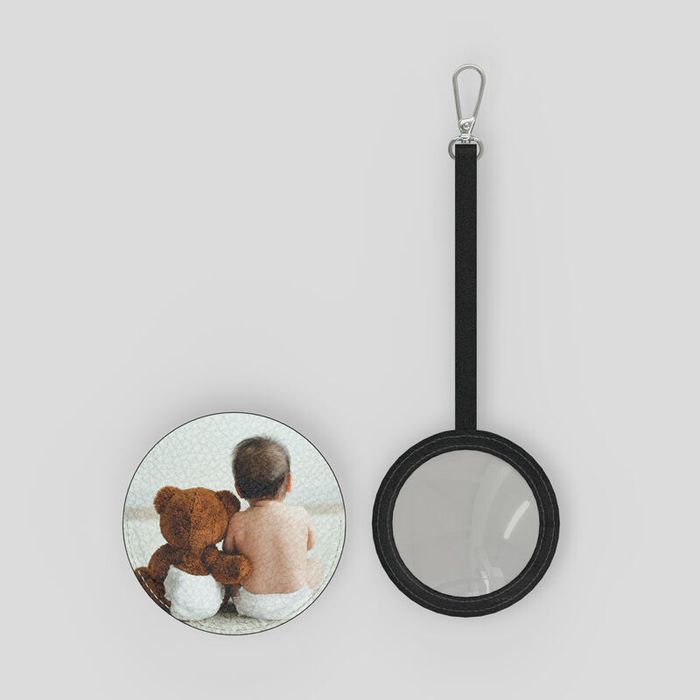 Your personalised compact mirror is crafted from smooth or bubble Nappa leather and finished by our expert makers. Vivid printing wraps around the 3" case and the edge is hand-painted for a luxury feel. Slide out the 2.7" shatterproof acrylic mirror to reveal the soft black leather interior that hugs the mirror securely.