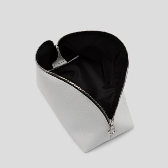 Keep your cosmetics in one place with a shell-shaped personalized leather cosmetic bag made from 100% real leather or vegan-friendly faux leather.
