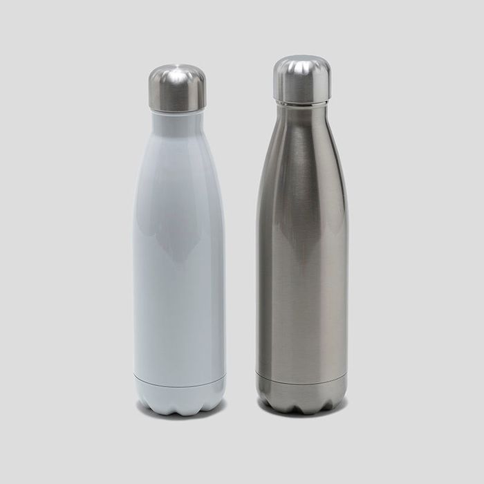 Due to the stunning silver color of the personalized drink bottles, strong and bold colors will be more effective at producing a striking result. Any text that you add to your personalized insulated bottles should be of a deep, rich color for the best possible outcome. If you're thinking of using a lighter color palette with your design, we recommend choosing the white base model.