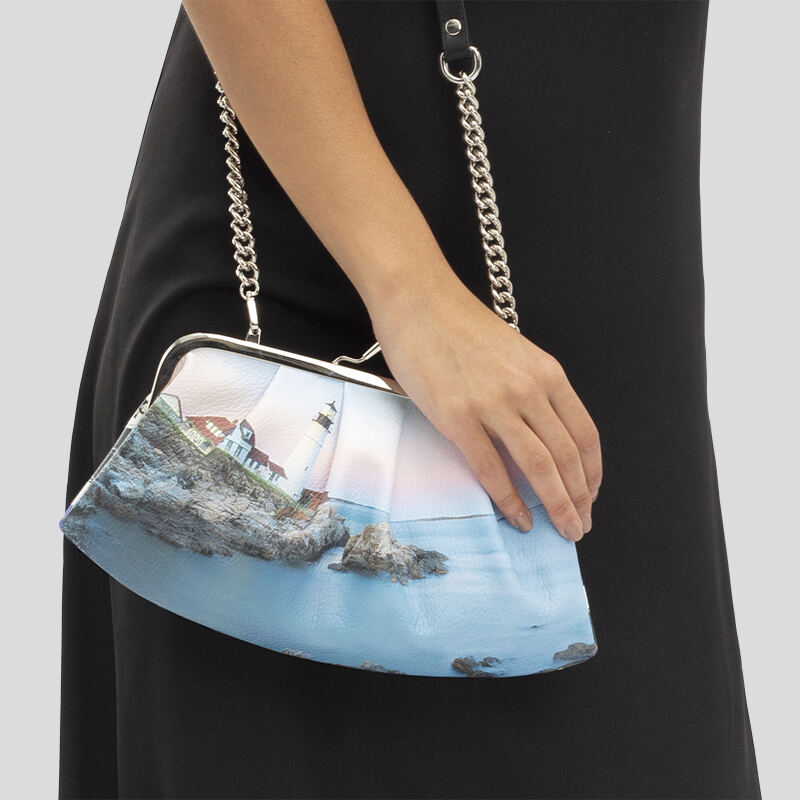 Once you design your own metal frame clutch bag, we note all of your specifications and use them to create your bag. The leather is printed with eco-friendly inks that are bonded to the material so that the design is as durable as the leather itself. The leather is then shaped into the body of the personalized metal frame bag, and the Suede Vision lining is added on the inside. We stitch everything together and attach the metal frame to the top of the bag. Everything is checked over y our quality control team before we send your photo gifts to you.