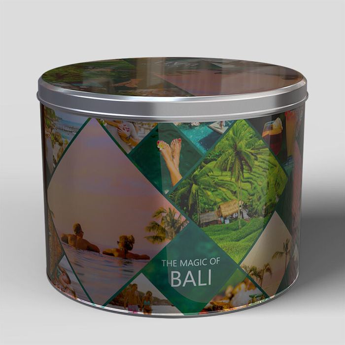 One popular use for these large custom candy tins is for cookie storage. If you have a large family, you need a big cookie tin. And upon our cookie tins, you can add text, photos and even instructions like "Keep Out - Ask Mom First!" These custom candy tins make for a lot of fun, but also a practical purpose with a resealable lid and large storage capacity of five liters.