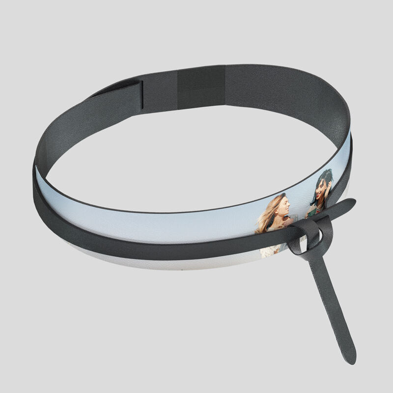 Such a unique accessory calls for a unique design. The straps of your personalized wrap belt wraps in front of your design, so we recommend avoiding photos where important elements might be obscured, such as faces. Long panoramic photos, patterns, or whimsical designs are great options to fill this space with. Try using landscape photos from your latest holiday, or a forest background to connect with nature.