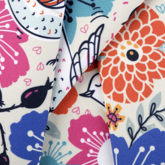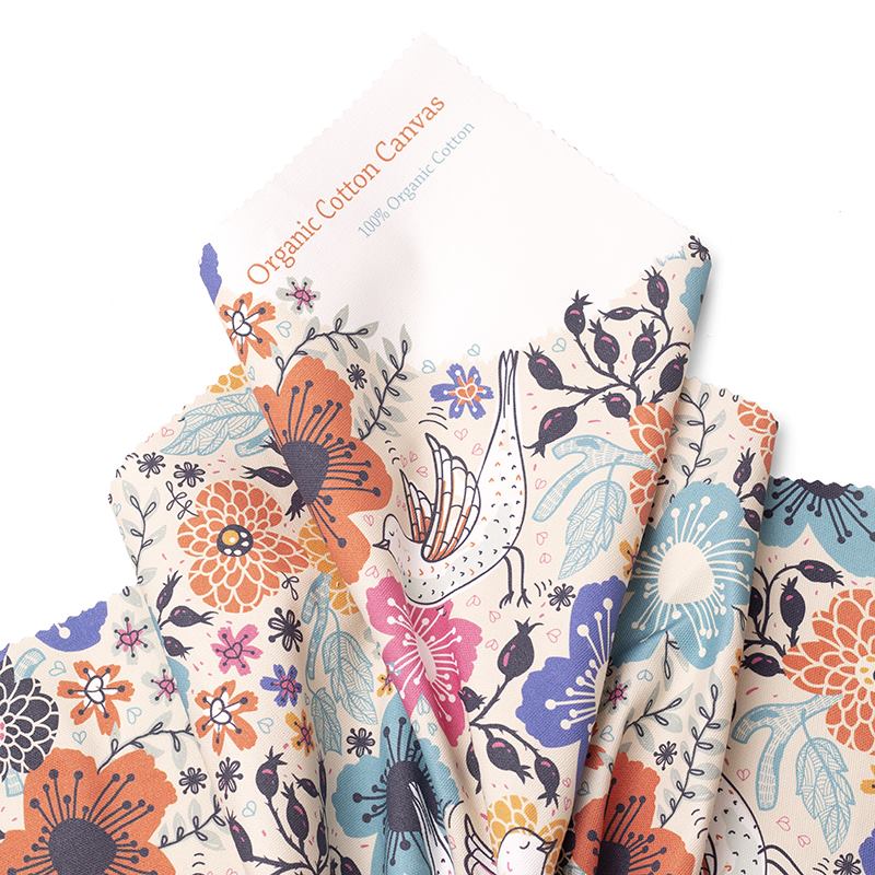 Your design is printed digitally onto the fabric in full color. This is done in a variety of ways depending on the fabric, including dye sublimation and pigment printing. We use eco-friendly inks, and you are given a choice of how you would like your fabric finished. It is worth bearing in mind that natural and organic fabrics, such as our Organic Cotton Canvas, naturally show subtle asperities that are part of the fibers of the fabric. As such, these elements might slightly show through your designs and will be more visible when light or white designs are printed. These will be less visible with darker colors, patterns or montages. The organic cotton canvas remains one of the popular choices among customers for their custom canvas fabric.