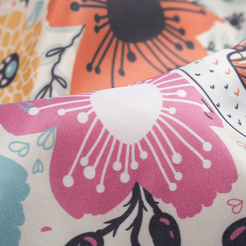 To guarantee a bold, everlasting print for your custom-designed silk impression, we use dye sublimation. This process bonds the ink deep into the textile so it won't rub away or come off in the wash. This poly-blend material is woven in a tight plain weave, so fine details and lines come through crisp and clear. Perfect if you've got an intricate pattern. You can choose photos, graphic designs or your own artwork to have custom printed onto your silk style fabric.