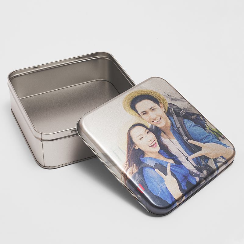 Design your own gift box to be made and printed to order in our studios by expert metal workers. Your custom storage tins are an exquisite gift that has lots of personality. The metal is manufactured and molded to produce the contemporary curved edges that give your designs that stunning 3D effect. The removable slip lid is incredibly secure, ensuring that the contents are contained without risk of falling out. We use a specialist printing process where the inks are impregnated directly onto the surface. The natural, authentic metal grain is visible through your print, but this creates a charming 'etched' effect that makes your silver storage tin box more distinguished.