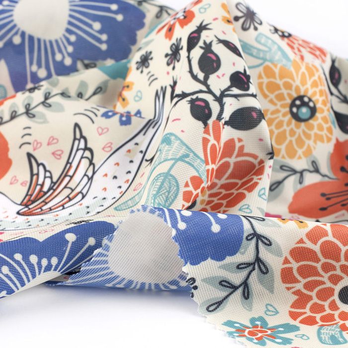 You have different finishing options for your printed voile fabric. We can send it to you as it comes off the printer, with an undyed border around the edges, or we can cut your personalized design on the line, removing all of the white space. You may prefer to have one of our expert seamstresses hem your printed voile fabric. If so, then you can choose either black or white thread, and either an overlock or folded hem. If you choose to have your voile printing hemmed, please ensure to allow 6-8 mm on each side for fabrics up to 2.95oz, and 0.59" - 0.78" for other fabrics.