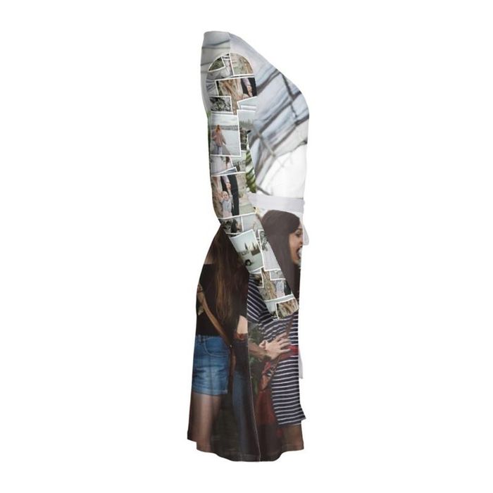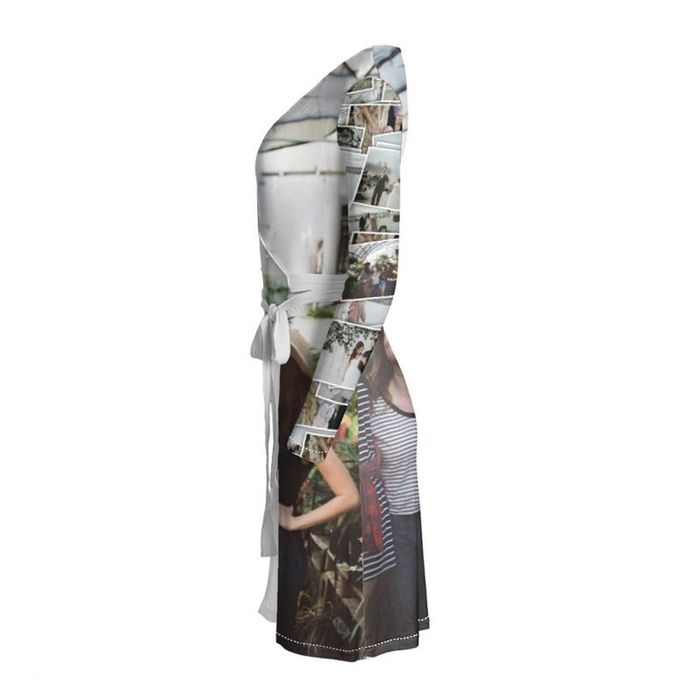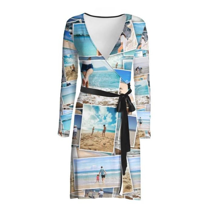 This custom wrap dress is figure hugging and can be customized with your favorite photos.